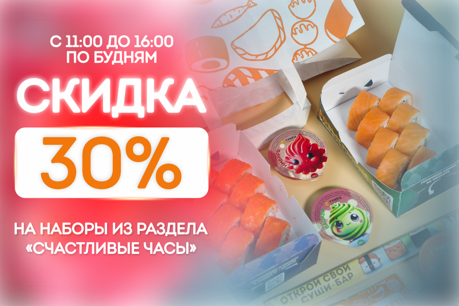 *Не суммируется с другими акциями и скидками. Не действует в выходные (акция счастливые часы), праздничные и предпраздничные дни.